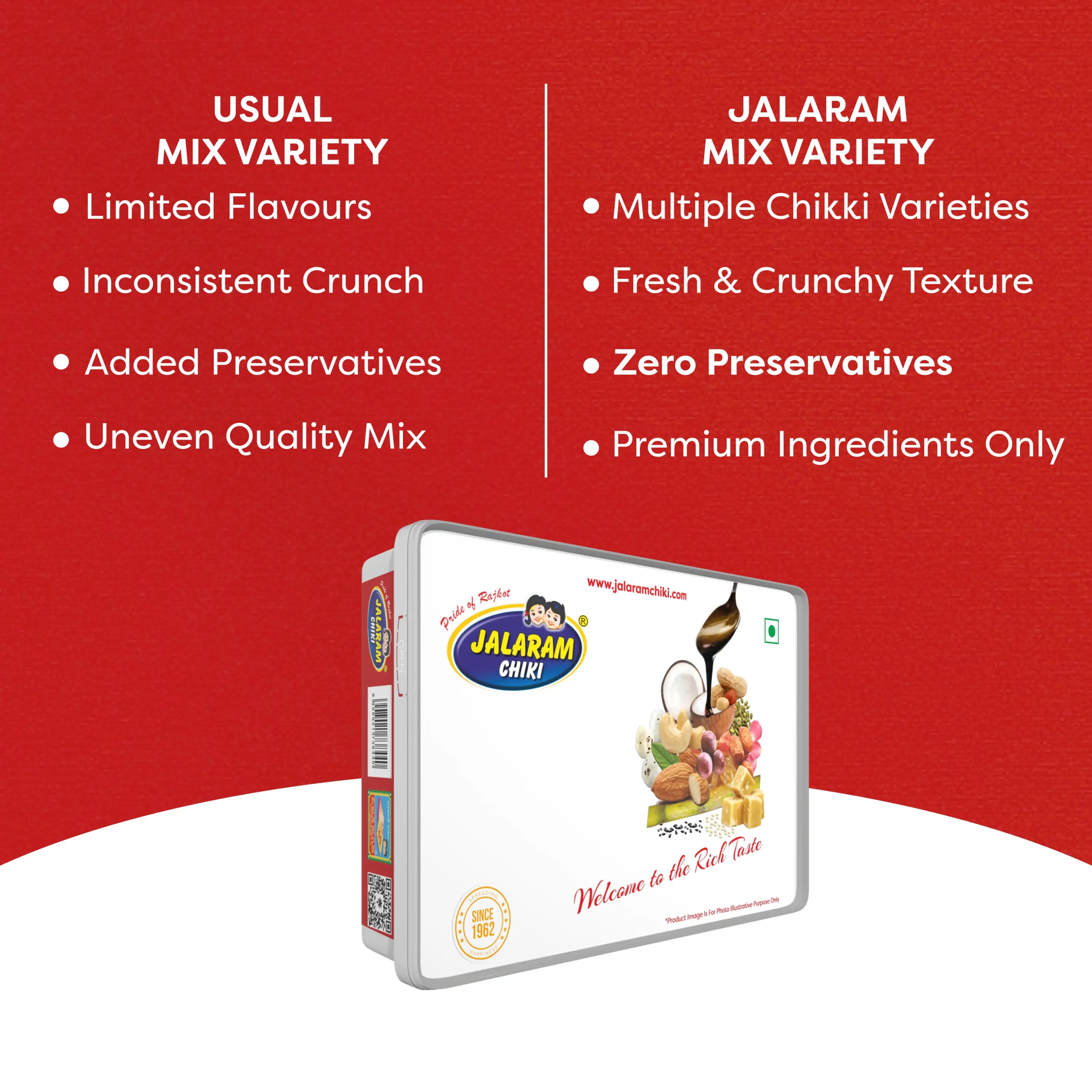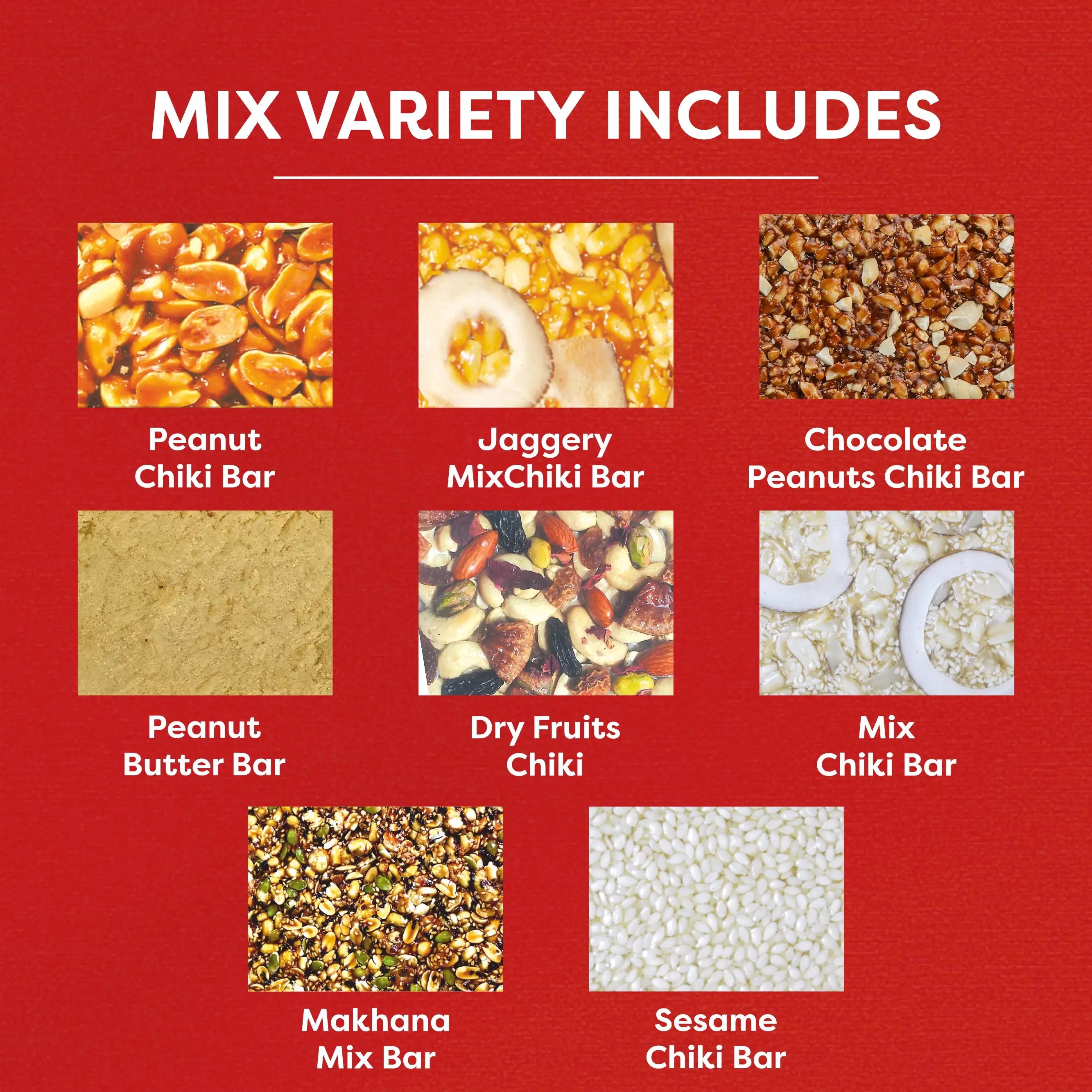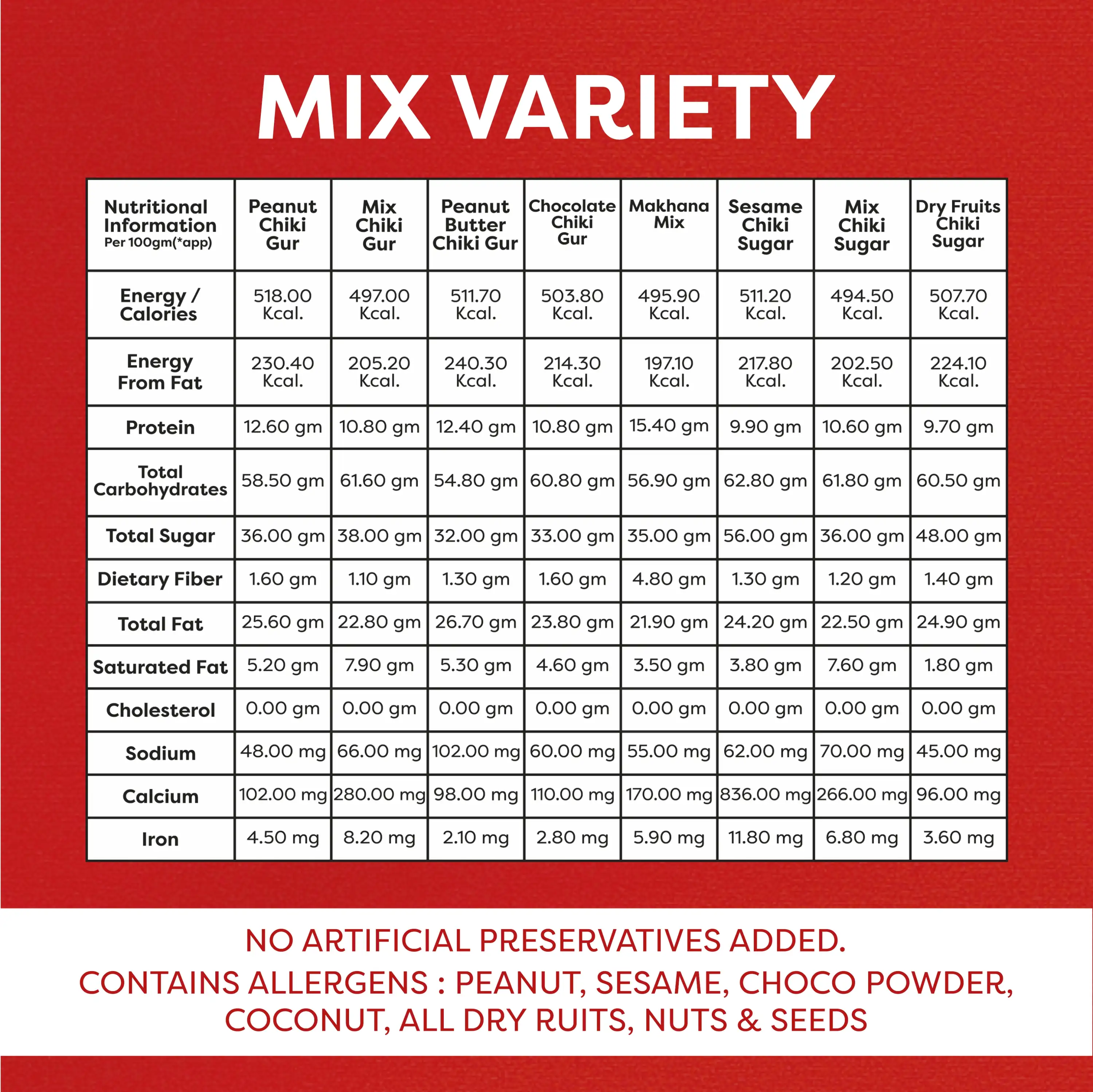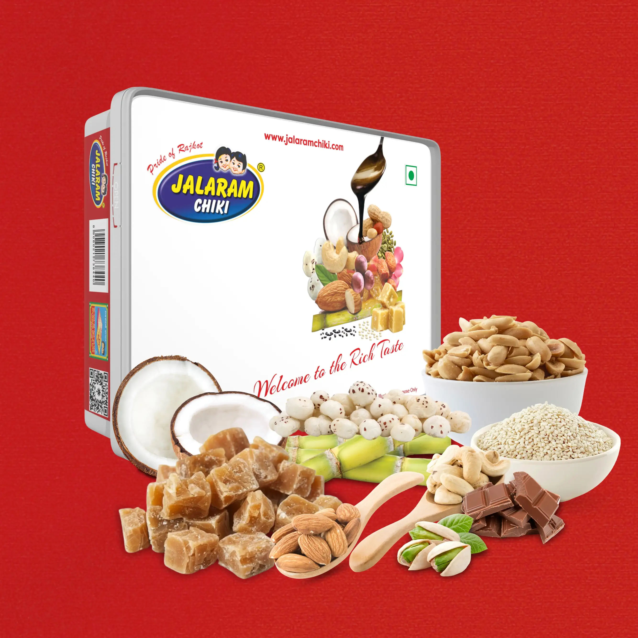 Jaggery, Sugar, Peanut, Sesame, Coconut, Black Sesame, Coco Powder,Dry Dates, Black Current, Resin, Rose Petals, Figs, Cashewnut, Almond, Pista & Liquid Glucose